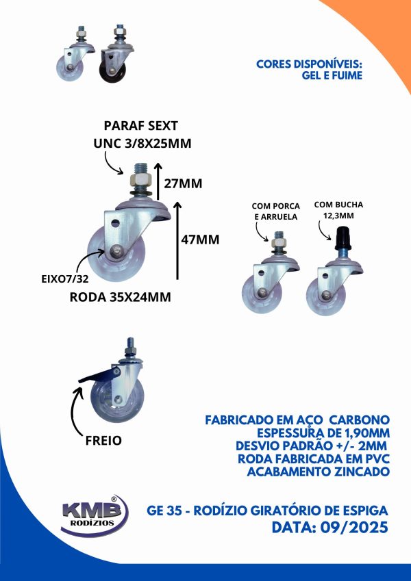 Garfo fabricado em chapa de aço com rodas de 35mm. Rodinha de Parafuso aplicado principalmente à suportes diversos, displays e linha moveleira, decoração moderna e de alta qualidade, com rodas de diversas cores e que não marcam o piso.